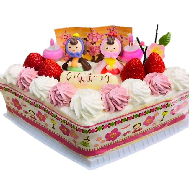しっとりコクのあるスポンジで北海道産生クリームと香川県産の苺を巻き、いちごのクリームといちごで飾った、かわいいおひなさまのケーキです。3から4名様におすすめのサイズです。